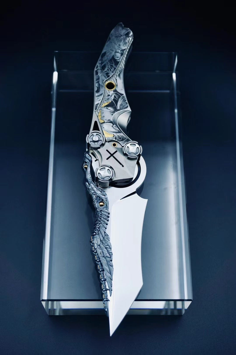 Born in 1990 in China, Andorise Hu (胡林) is the founder and designer of Mundus Knives, a brand redefining the art of knife-making. Entering the knife world in October 2022, Hu quickly grew frustrated with the lack of innovation and decided to design something truly unique. His first creation, Redemptio (The Redeemer), was completed in just one month, followed shortly by Genesis (Al-Khem), setting the foundation for Mundus Knives. Hu’s designs merge eight core elements: art, mechanics, mystery, eyes, wings, galaxies, emotions, and the human form. Drawing inspiration from his own illustrations dating back to 2008, he transforms his artistic visions into tangible masterpieces. By using industry-leading materials and techniques, he creates knives that balance beauty, innovation, and functionality, driven by the principle of pleasing himself at first sight. In 2024, Hu gained recognition at major events, including the 12th China Famous Knife Show, where he won silver and bronze awards, and international exhibitions like Blade Show West and CCKS. His standout works, Redemptio and Genesis, feature groundbreaking designs such as intricate inlays, sculpted wings, and transformative blade mechanisms, demonstrating a perfect fusion of art and engineering. With Mundus Knives, Andorise Hu has not only introduced revolutionary designs but also elevated Chinese knife-making to a new level of artistry and precision.